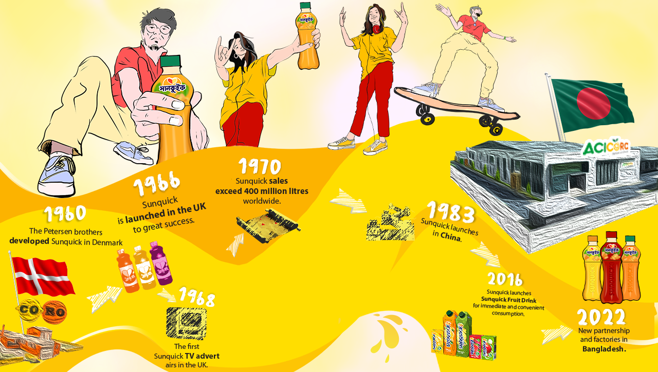 From Denmark With Love Ready To Drink whenever, wherever Scroll down “FROM DENMARK WITH LOVE”ACI CO-RO is a joint venture between the Bangladeshi conglomerate, ACI Ltd. and the Danish fruit juice giant, CO-RO A/S. The JV is founded in 2019 with the purpose of bringing refreshment and delight to the Bangladeshi consumer through an offering of delicious fruit-based European standard drinks under CO-RO’s brand umbrella. ACI CO-RO is producing Sunquick Fruit Drink Beverages in its Bangladesh Factory under the direct supervision of CO-RO A/S Denmark. Find out why Read now Recipes Much More Than Concentrate! Find out why Surprise With New Drinks Sunquick Mango Fruit Drink- 1 Ltr Sunquick Orange Fruit Drink- 1Ltr Sunquick Berry Mix Fruit Drink- 1 Ltr Sunquick Orange Fruit Drink- 250 ml Sunquick Mango Fruit Drink- 250 ml Sunquick Berry Mix Fruit Drink- 250 ml Sunquick Concentrate Blackcurrant Sunquick Concentrate Pink Guava & Strawberry Sunquick Concentrate Apple Sunquick Concentrate Fruit Cocktail Sunquick Concentrate Passion Fruit ✓ Made with fruit juice ✓ No artificial flavours and colours ✓ Contains Vitamin C ✓ Made with fruit juice ✓ No artificial flavours and colours ✓ Contains Vitamin C ✓ Made with fruit juice ✓ No artificial flavours and colours ✓ Contains Vitamin C ✓ Made with fruit juice ✓ No artificial flavours and colours ✓ Contains Vitamin C Click here to BUY Chaldal Click here to BUY Pandamart
