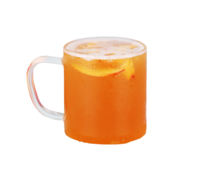 茉香蜜桃 蜜桃红茶橙+桃 配料: 「新的」蜜桃红茶 30ml 「新的J橙+桃 5ml 果糖 10ml 茉莉花茶汤 200ml 冰块 200g 制作步骤: 1.把「新的」橙+桃、果糖、冰块放入雪克壶,摇均 匀装杯。 2.把「新的」蜜桃红茶和茉莉花茶汤混合,倒入杯中,桃切片装饰。